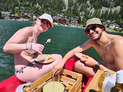 Une fondue les pieds dans l’eau, au milieu d'un lac naturel.